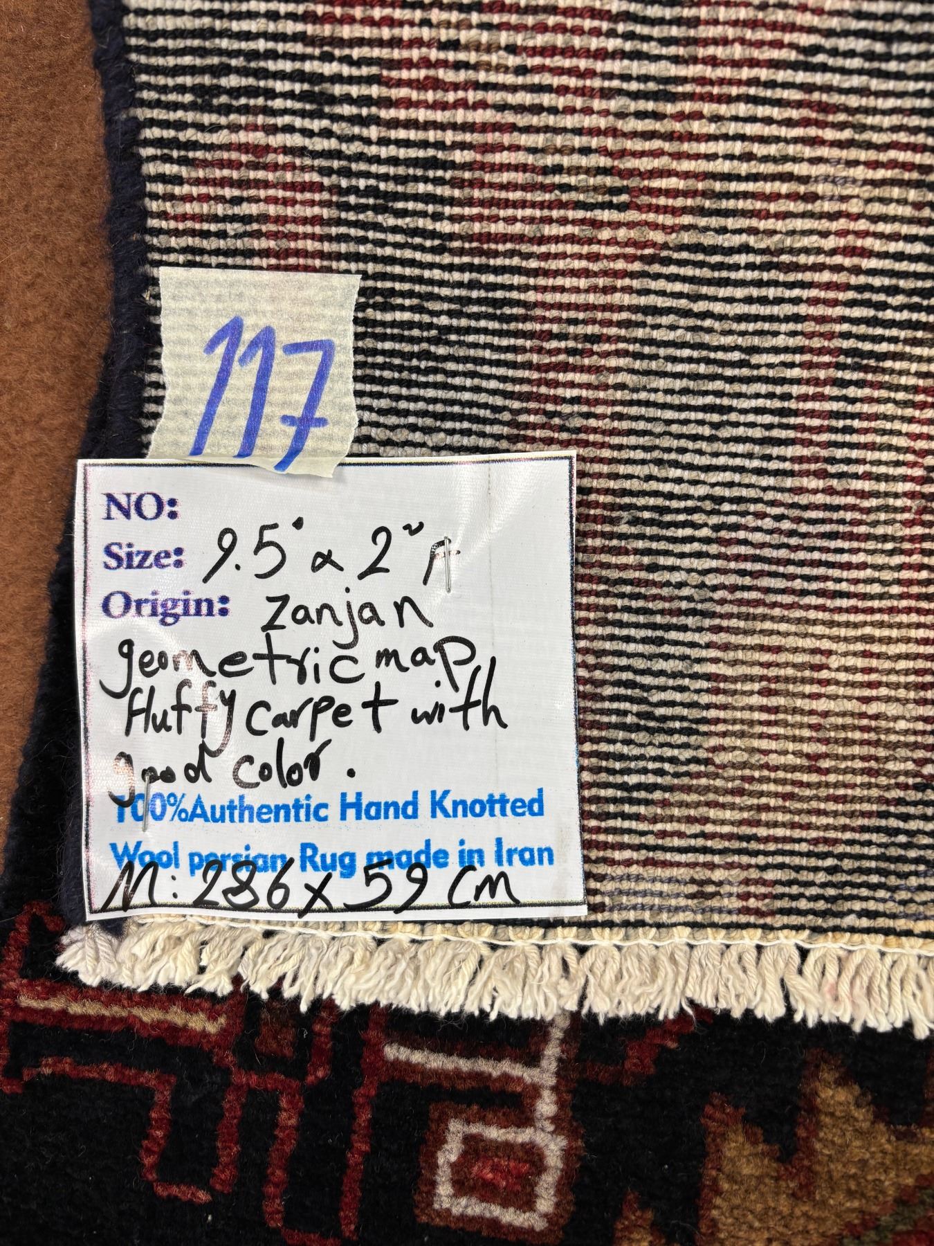 Zanjan - 100% Authentic Hand Knotted Wool Persian Rug - Handmade in Iran - 9.5" x 2" ft - No: 92