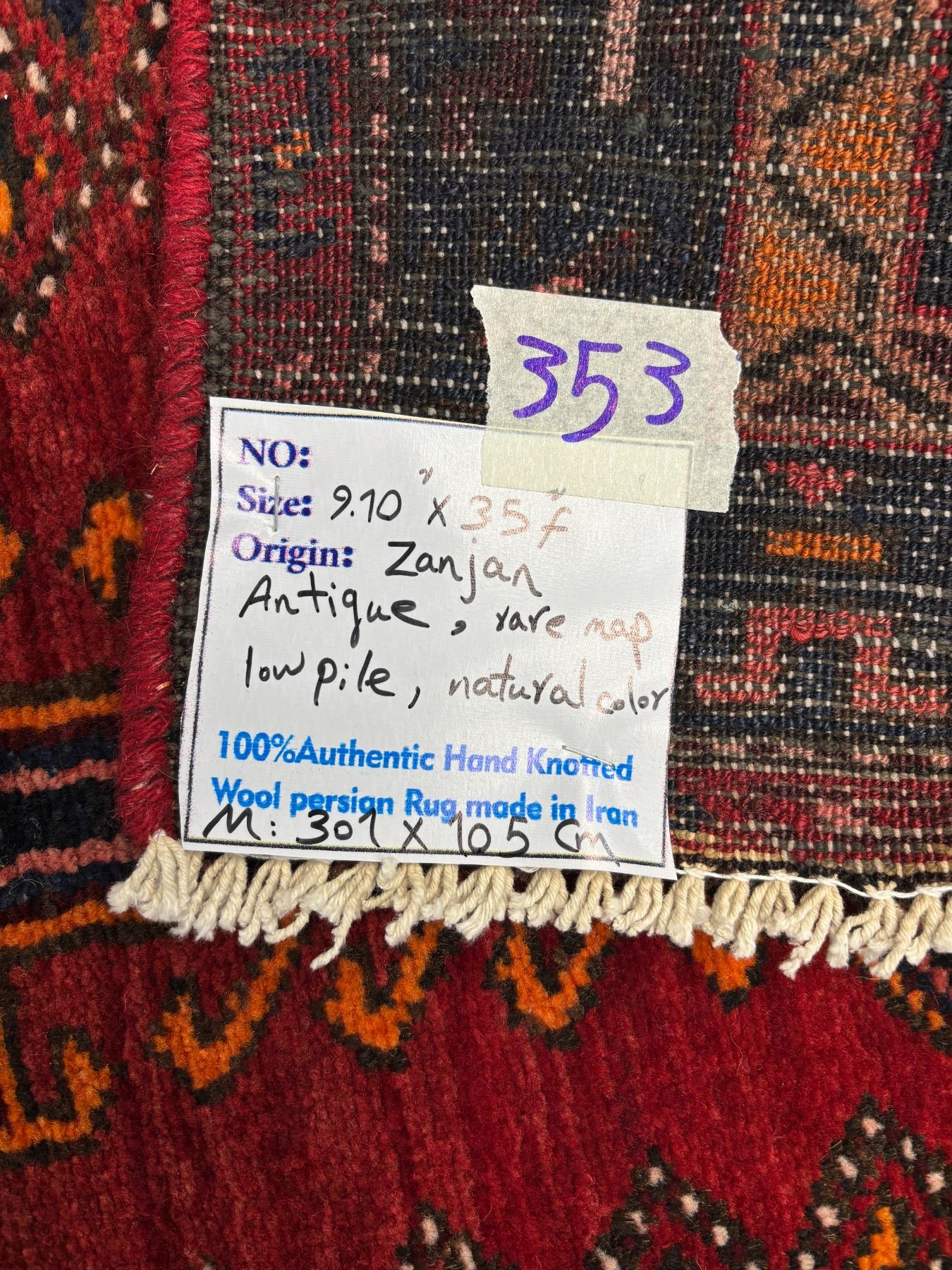 Zanjan 100% Authentic Hand Knotted Wool Persian Rug Handmade in Iran Antique Rare map Natural color Low pile(These carpets have been washed professionally, and for this reason there are no 3tears or dirt in this carpet and it will be delivered to you clean and smooth. Don't miss the opportunity to buy such a carpet) 9.10' × 3.5'