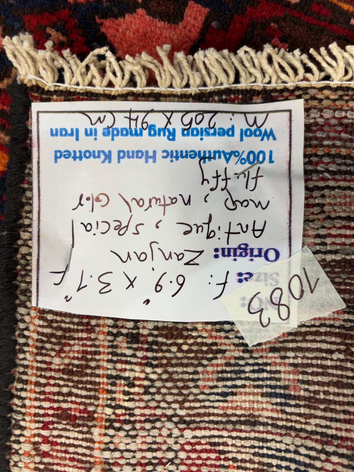 Zanjan 100% Authentic Hand Knotted Wool Persian Rug Handmade in Iran Antique Special map Fluffy rug natural color (These carpets have been washed professionally, and for this reason there are no 3tears or dirt in this carpet and it will be delivered to you clean and smooth. Don't miss the opportunity to buy such a carpet) Size: 6.9'×3.1'