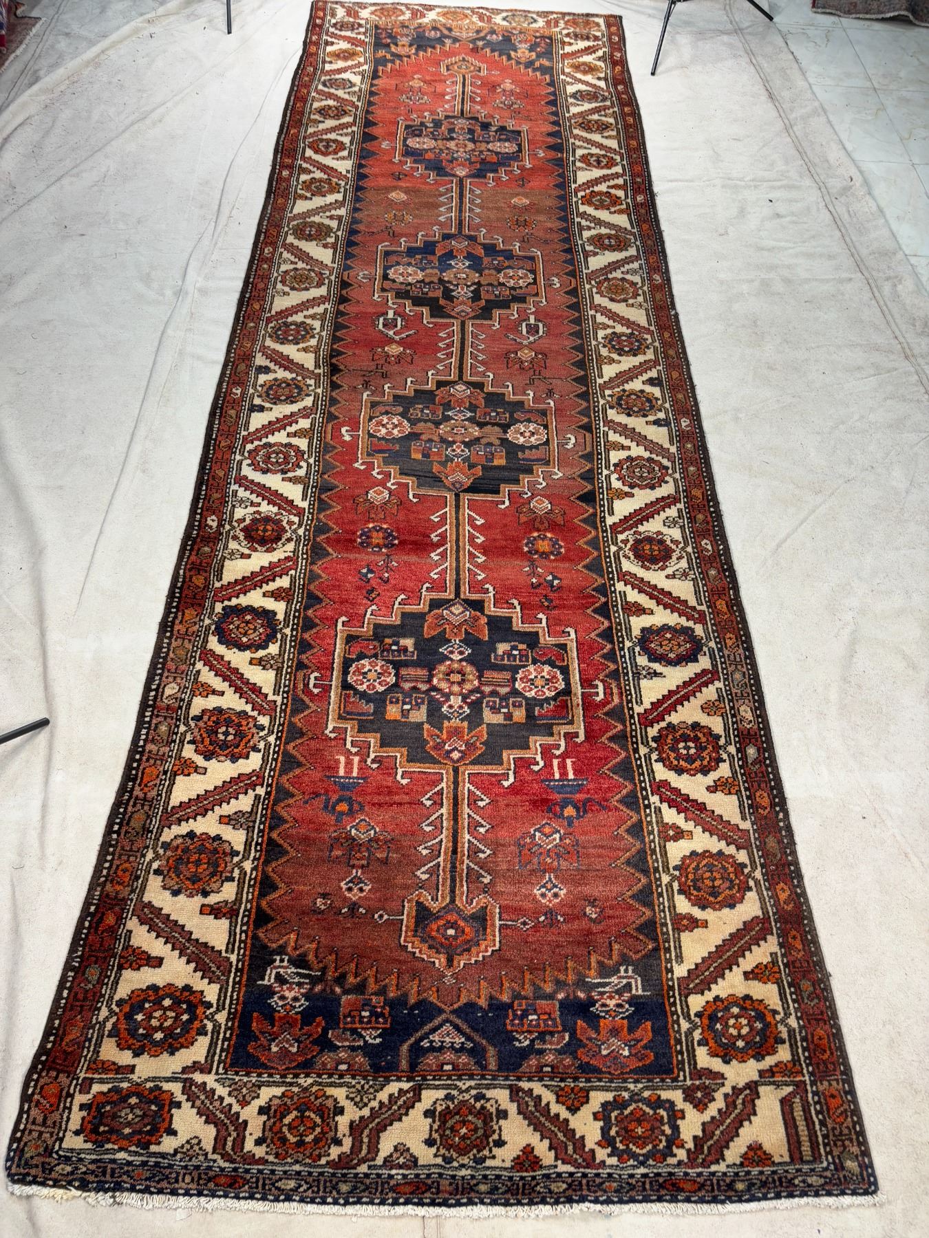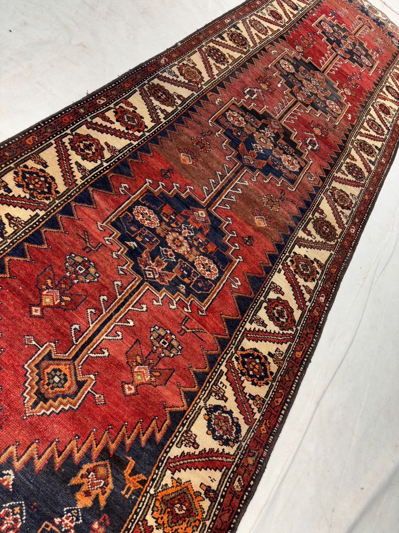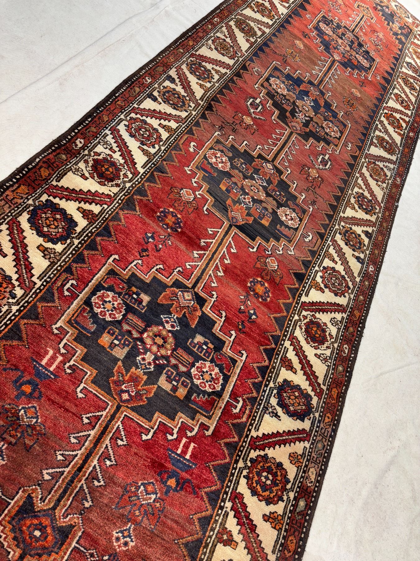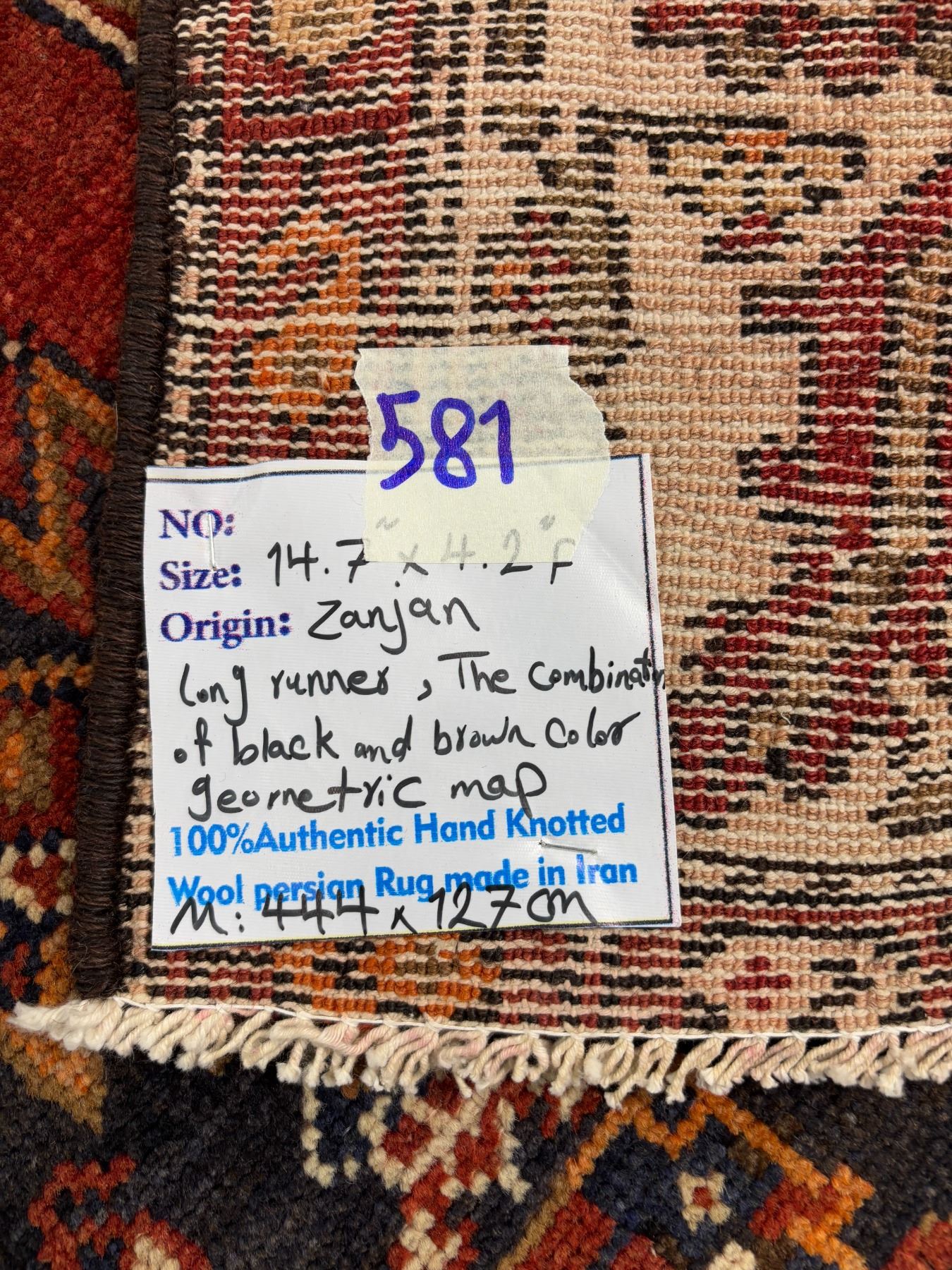 Zanjan 100% Authentic Hand Knotted Wool Persian Rug Handmade in Iran Long runner The combination of black and brown color geometric map (These carpets have been washed professionally, and for this reason there are no 3tears or dirt in this carpet and it will be delivered to you clean and smooth. Don't miss the opportunity to buy such a carpet) 14.7'×4.2'