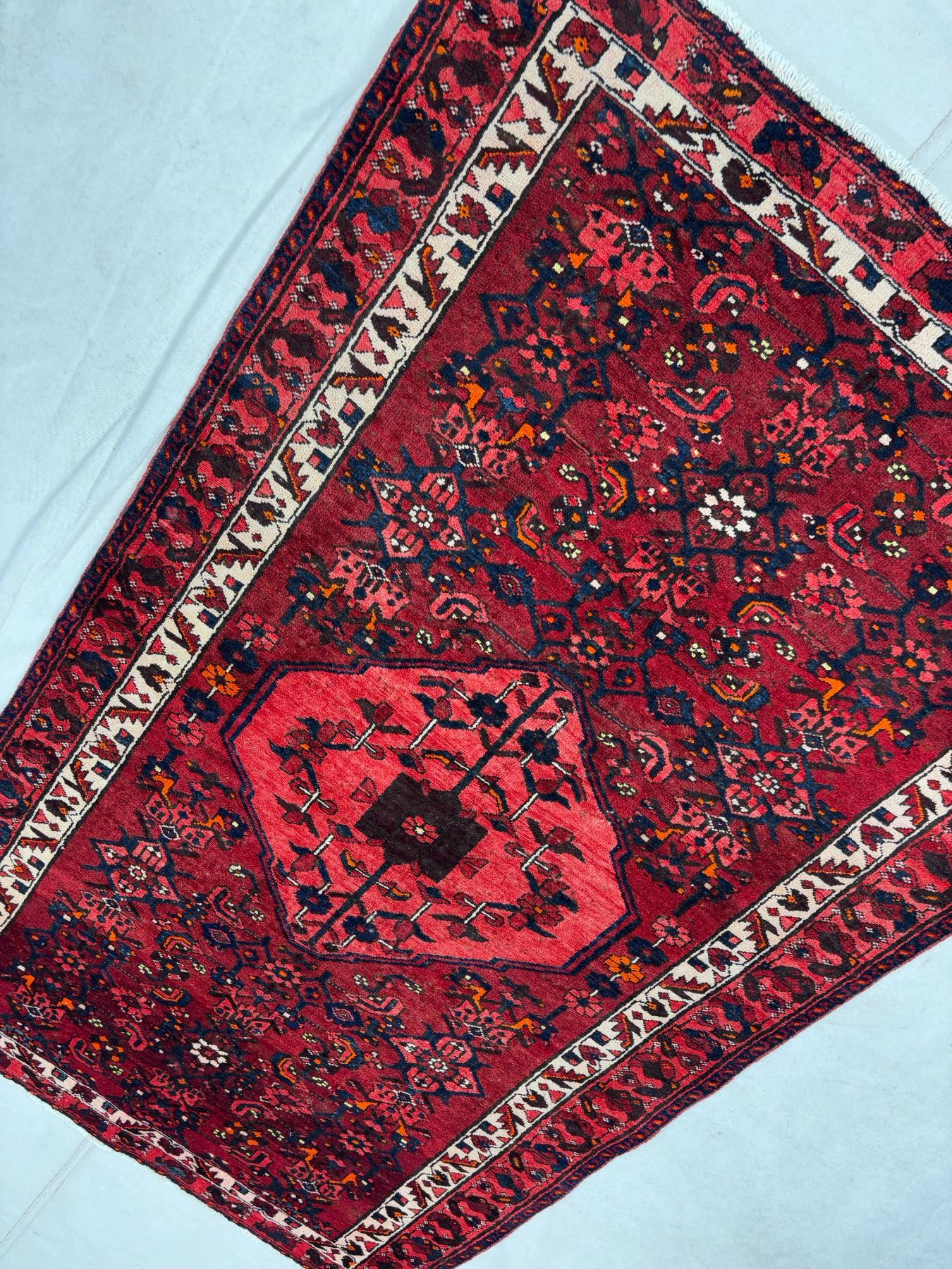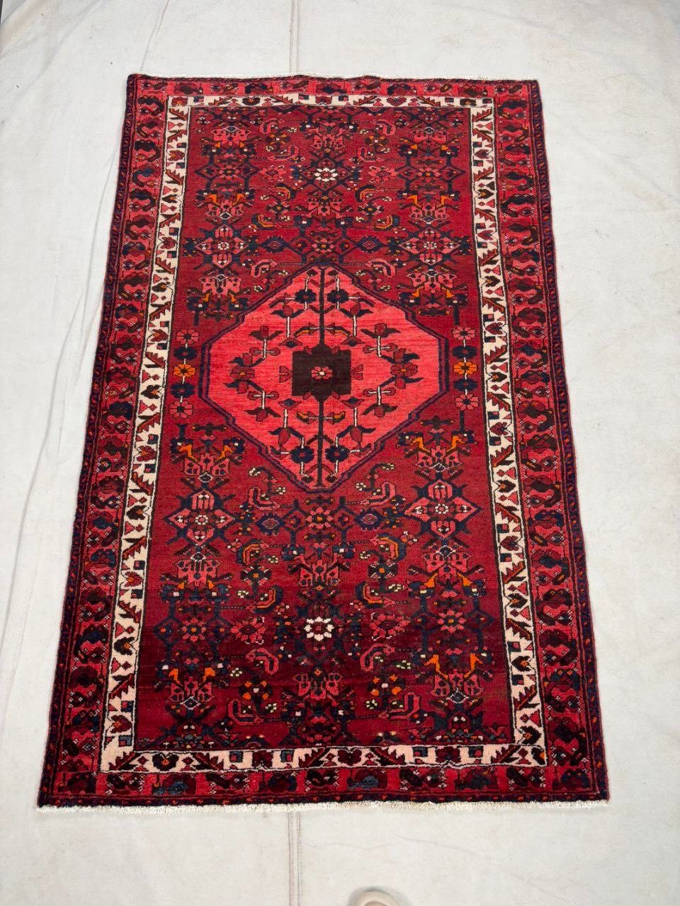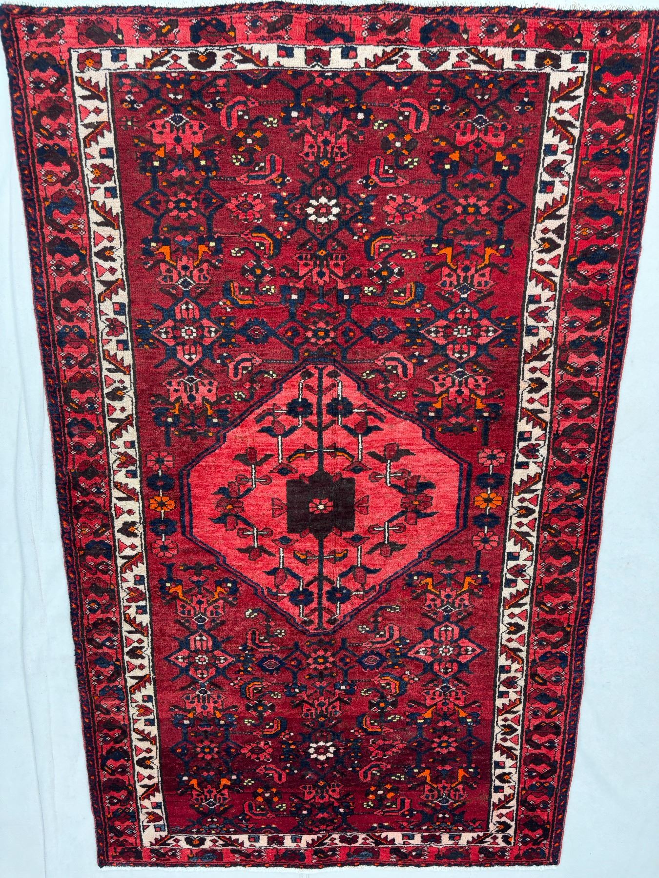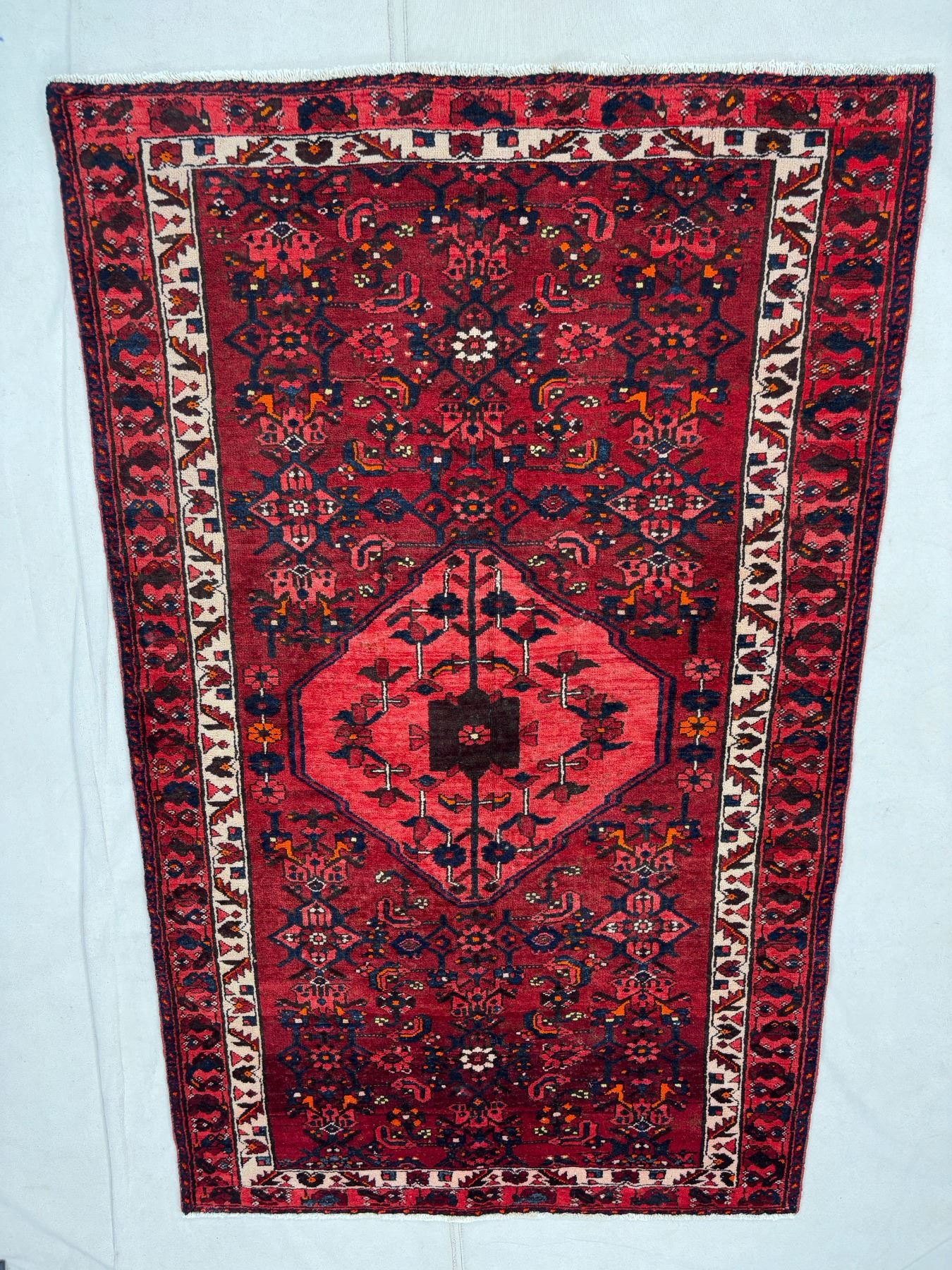 Zanjan 100% Authentic Hand Knotted Wool Persian Rug Handmade in Iran geometric map Sheepwool Vegetables dye Low pile (These carpets have been washed professionally, and for this reason there are no tears or dirt in this carpet and it will be delivered to you clean and smooth. Don't miss the opportunity to buy such a carpet) Size: 6.8' × 4'