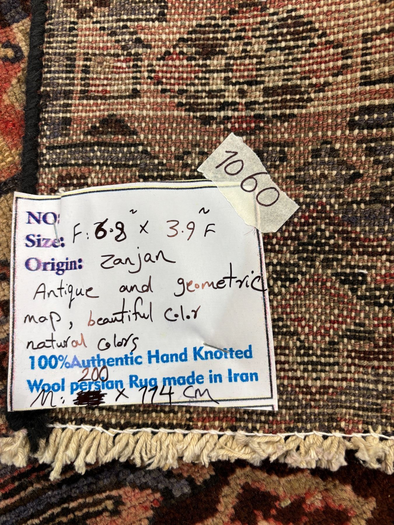 Zanjan Antique and geometric map Beautiful colour natural colours 100% Authentic Hand Knotted Wool Persian Rug (Size - 6.8'×3.9' - 200×114 cm)