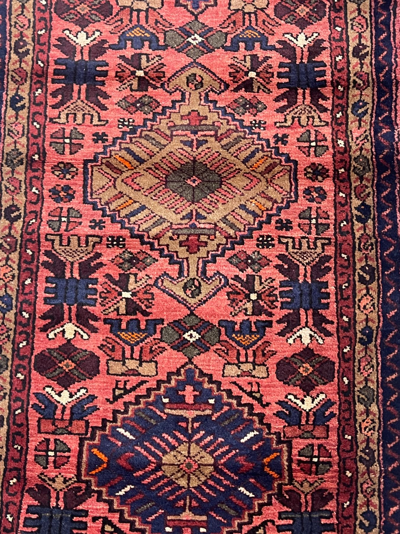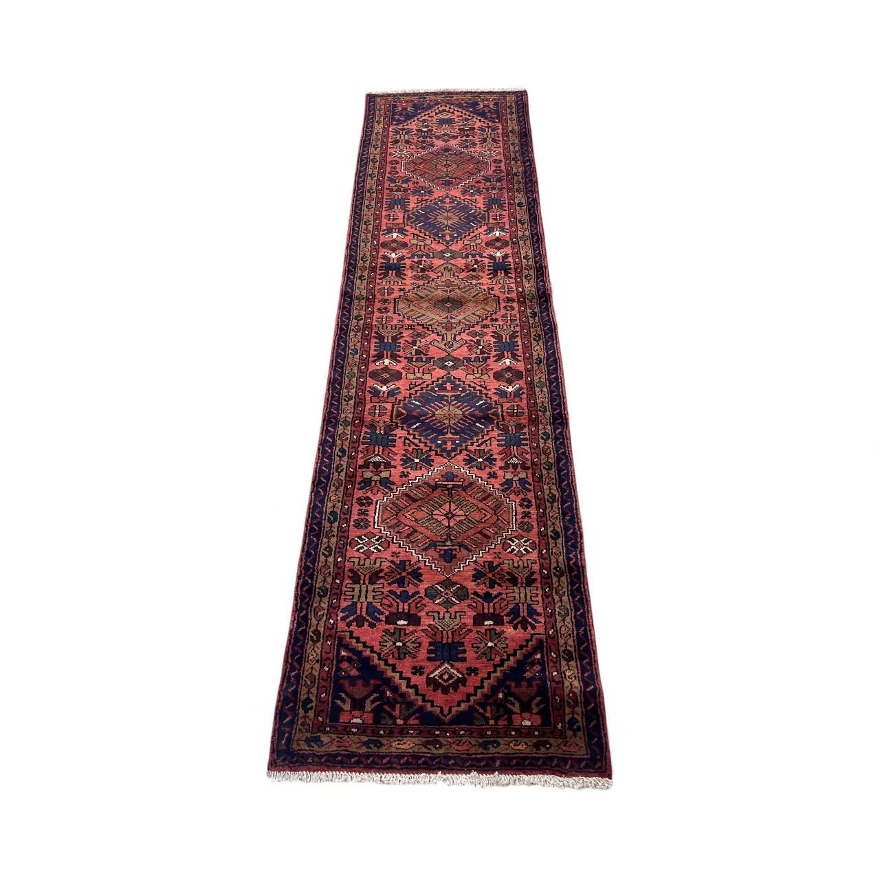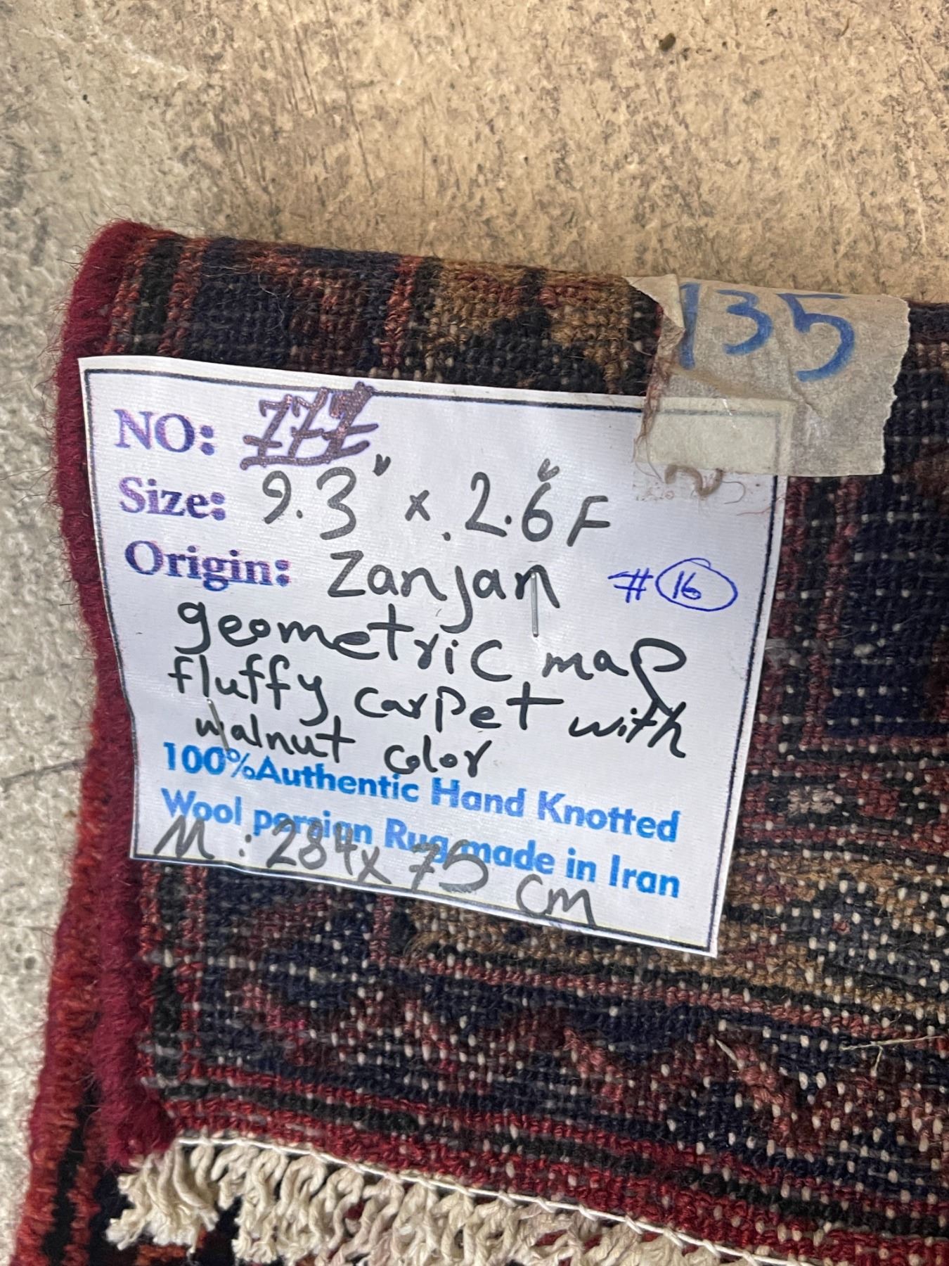 Zanjan Geometric Map Fluffy Carpet w/Walnut Colour 100% Authentic Hand Knotted Wool Persian Rug Handmade in Iran (M:284x75cm)