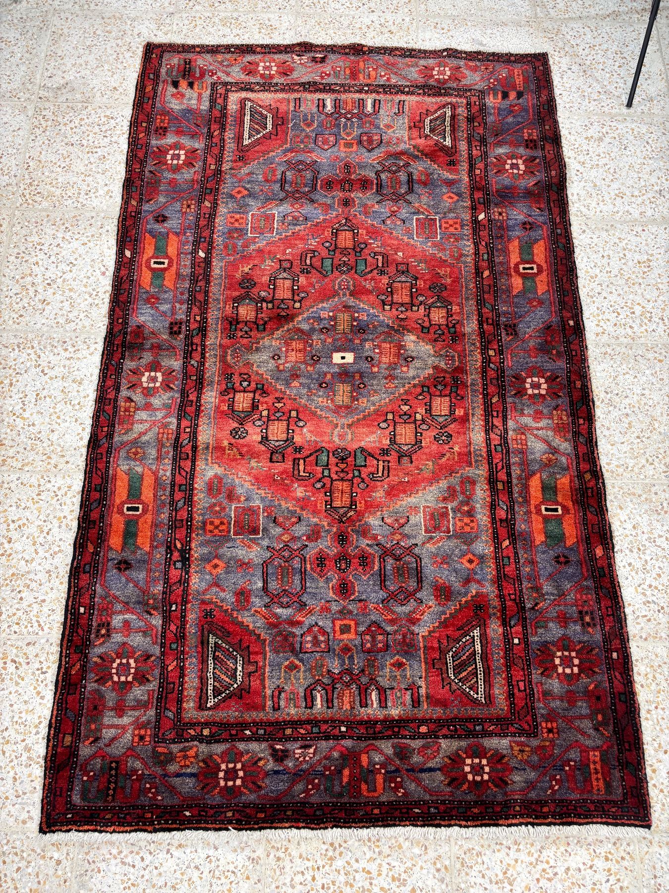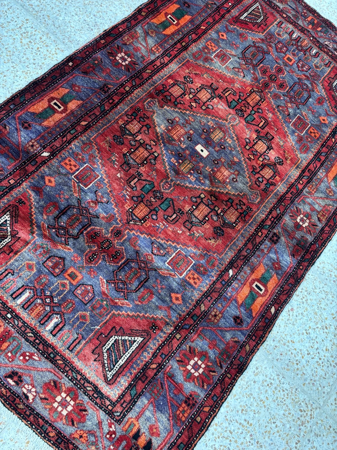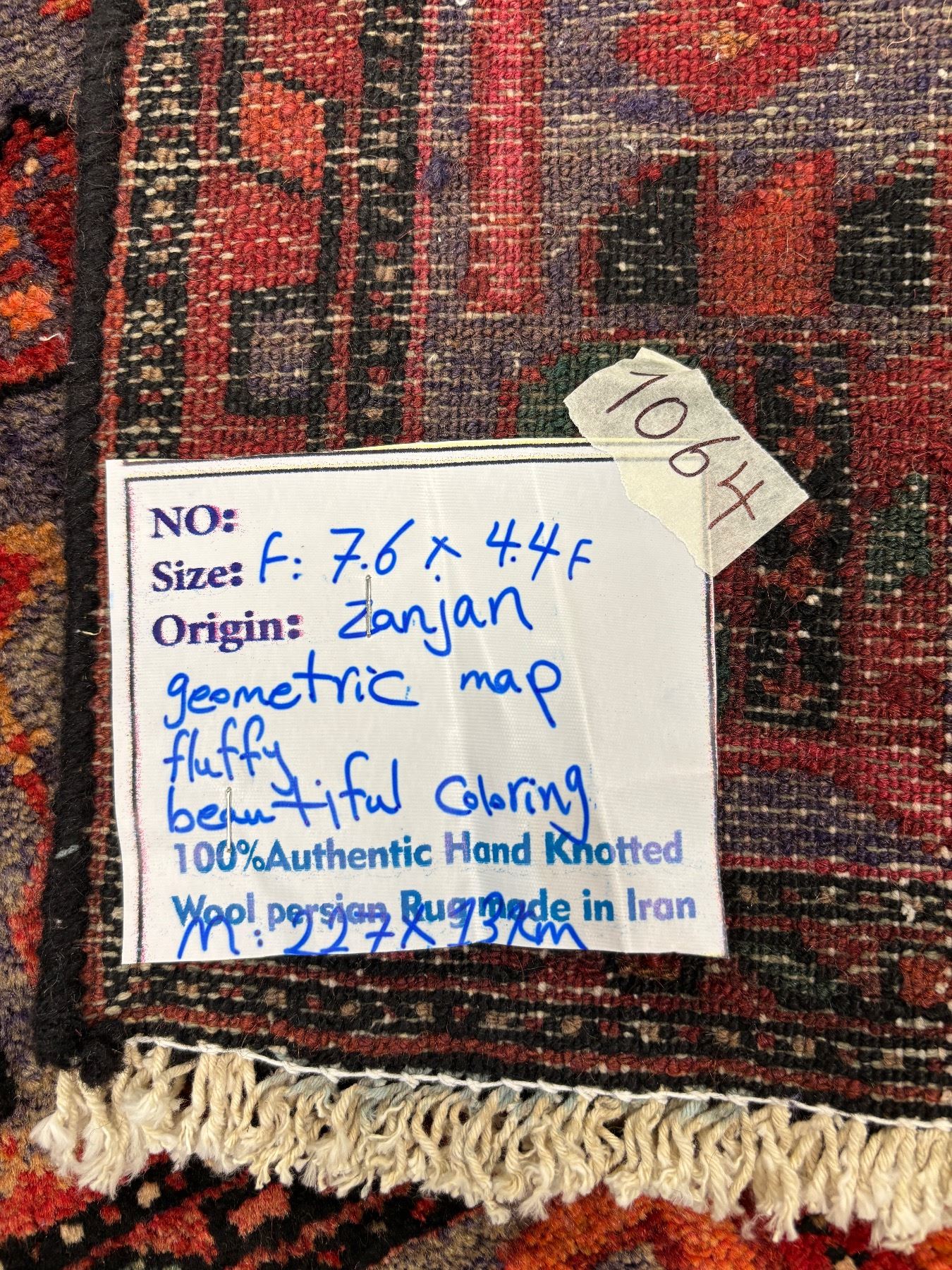 Zanjan geometric map Fluffy carpet Beautiful colouring (Size 7.6' x 4.4' ft 227 x131 cm) 100% Authentic Hand Knotted Wool Persian Rug Handmade in Iran (These carpets have been washed professionally, and for this reason there are no tears or dirt in this carpet, and it will be delivered to you clean and smooth. Don't miss the opportunity to buy such a carpet)