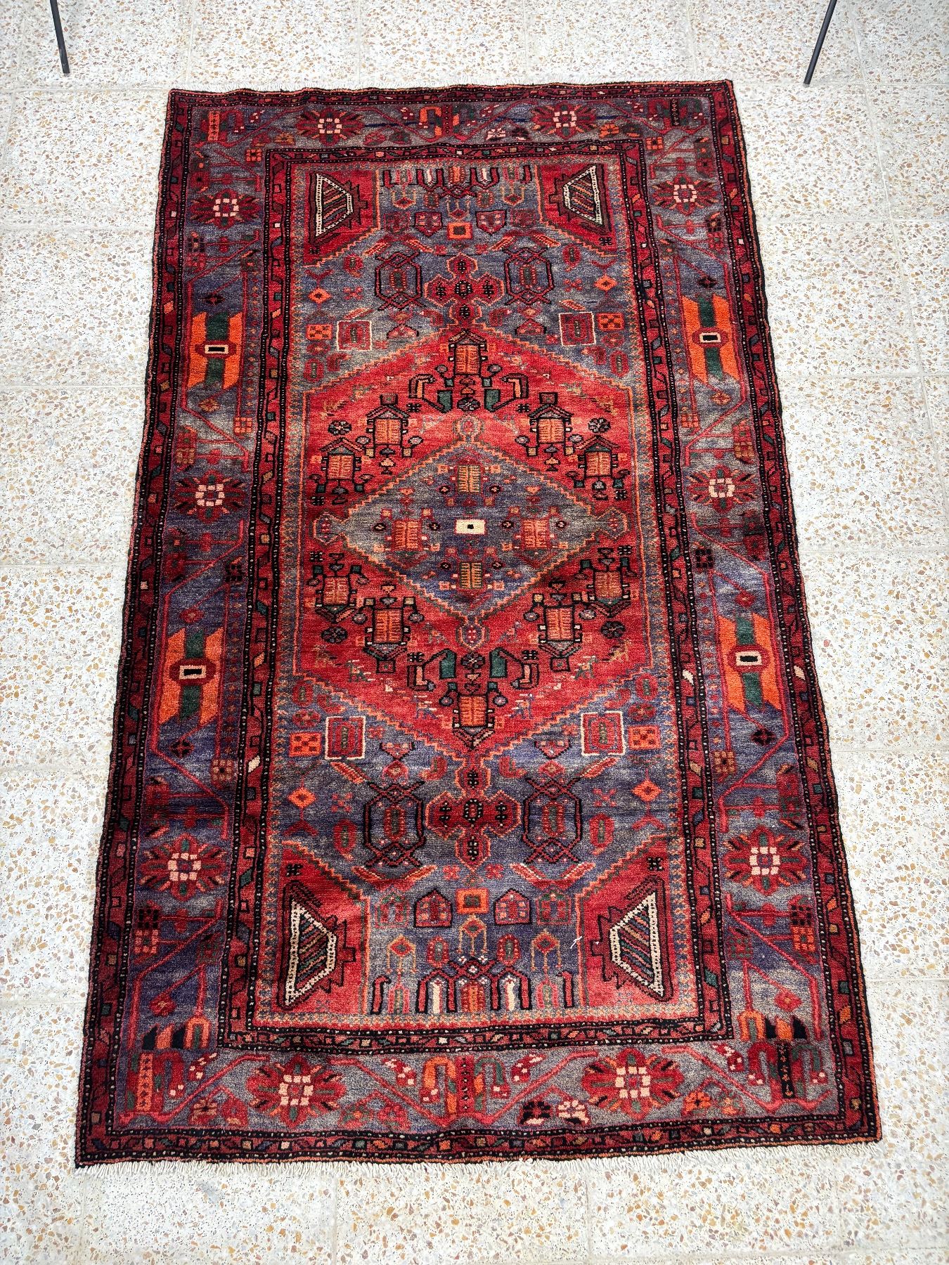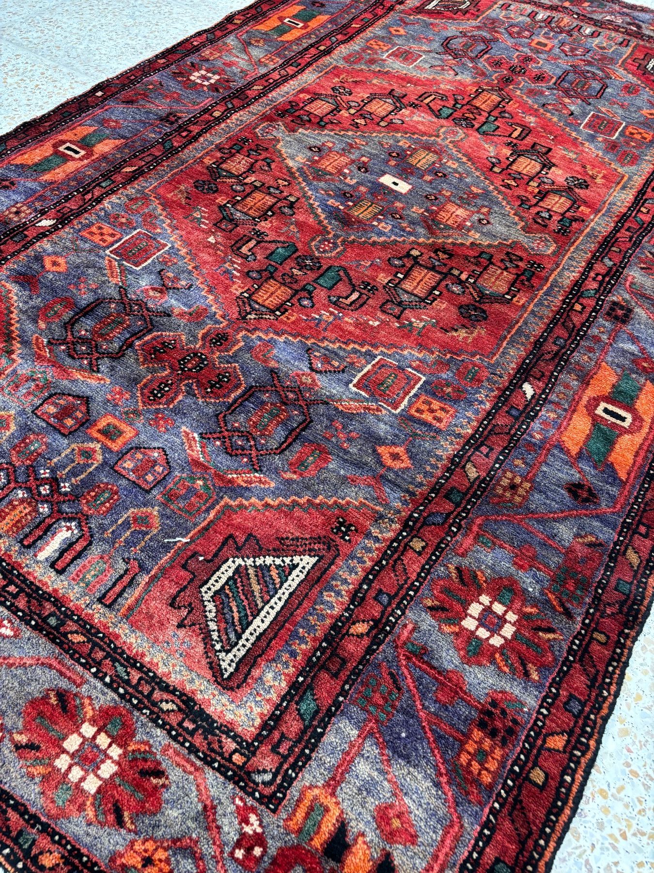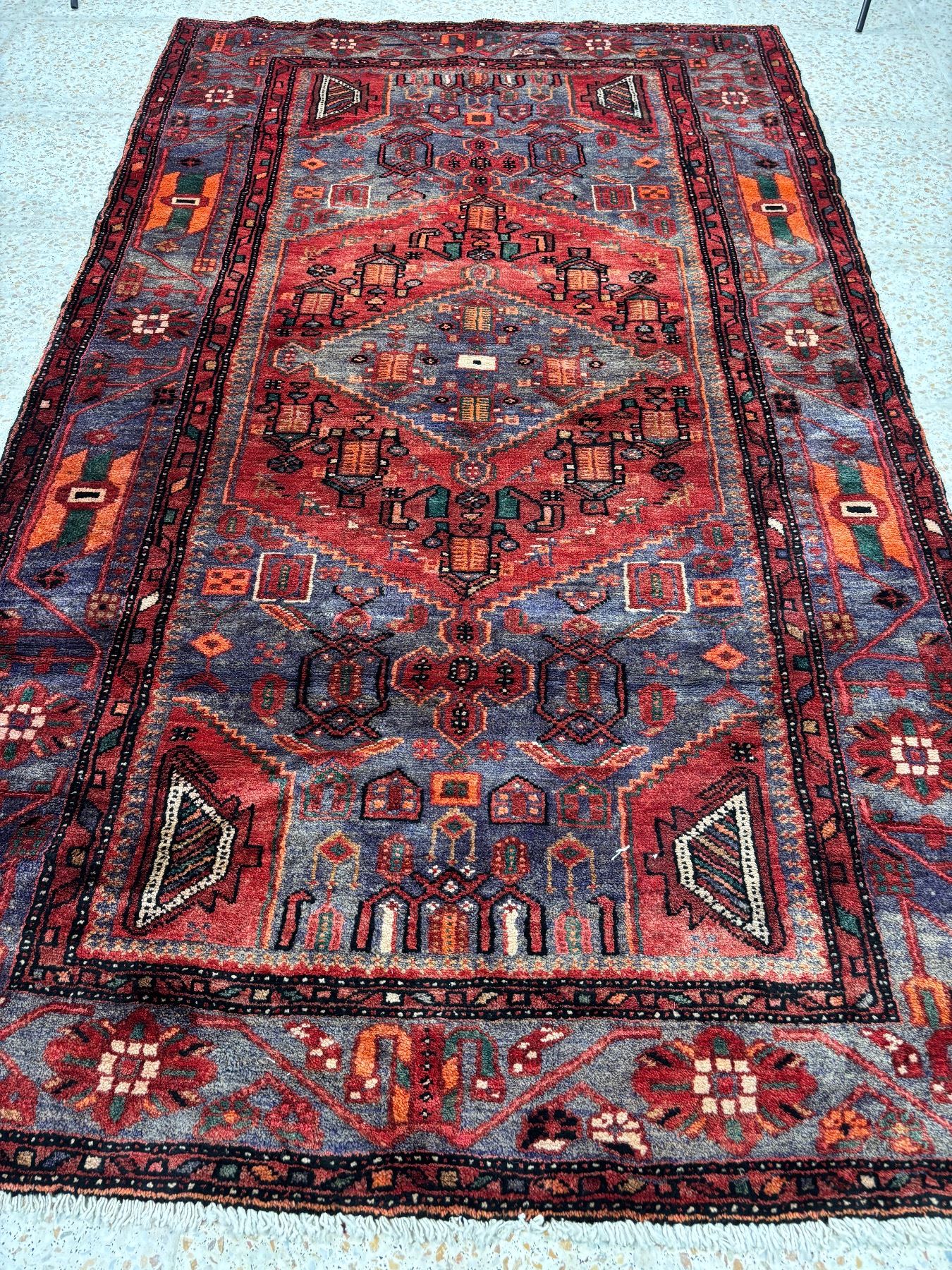 Zanjan geometric map Fluffy carpet Beautiful colouring (Size 7.6' x 4.4' ft 227 x131 cm) 100% Authentic Hand Knotted Wool Persian Rug Handmade in Iran (These carpets have been washed professionally, and for this reason there are no tears or dirt in this carpet, and it will be delivered to you clean and smooth. Don't miss the opportunity to buy such a carpet)