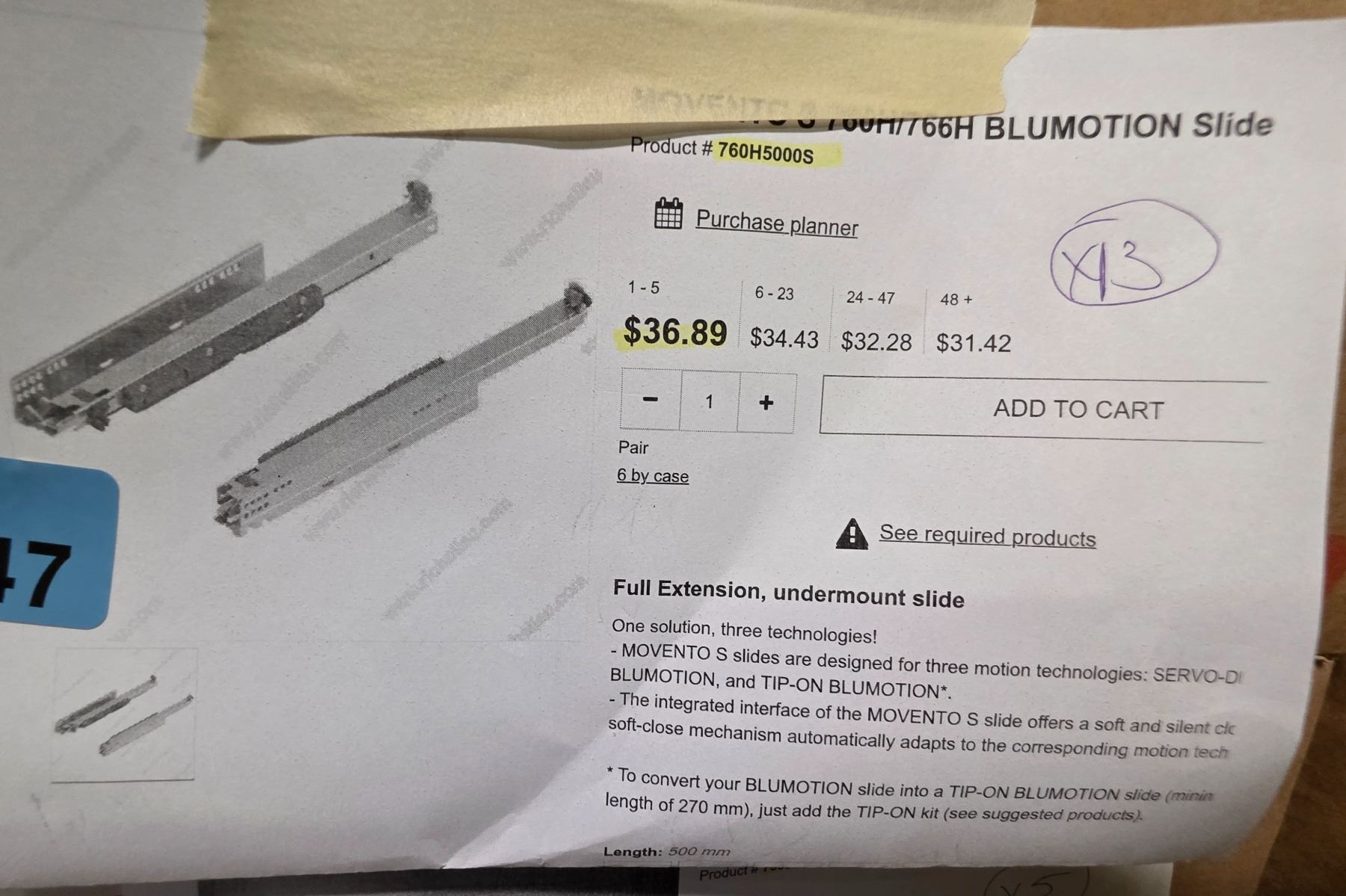 (x13) Blum Movento 20" undermount drawer slides - $450